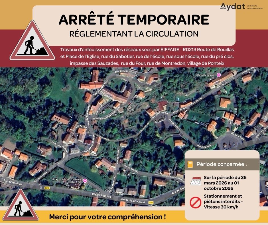 Nous invitons les riverains et usagers Ă faire preuve de prudence et Ă respecter la signalisation mise en place afin dâassurer la sĂ©curitĂ© de tous.