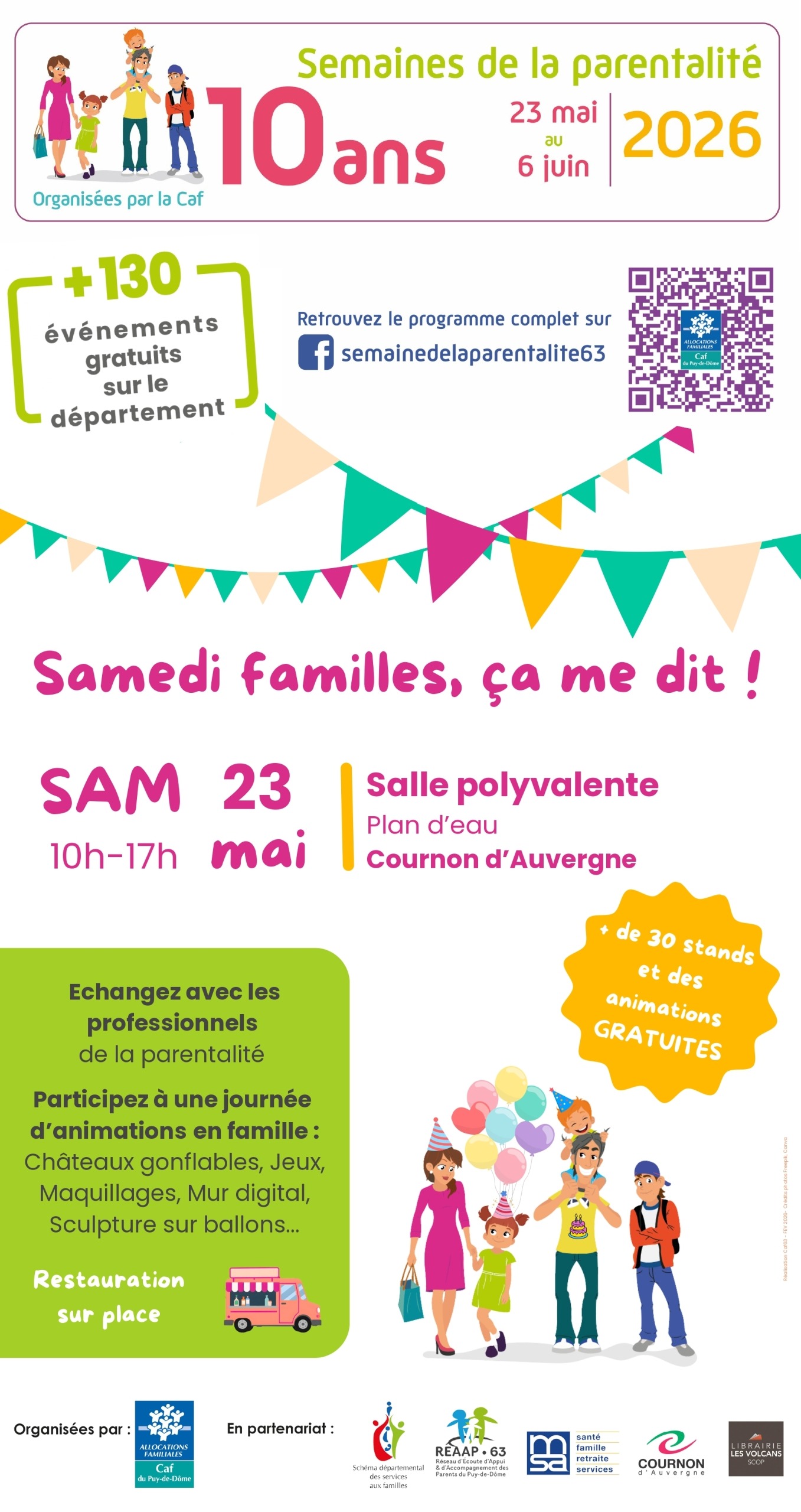 Cet Ă©vĂ©nement est lâoccasion pour les parents, futurs parents et professionnels de dĂ©couvrir de nombreux ateliers, rencontres et temps dâĂ©change autour de la parentalitĂ©. Autant de moments pour sâinformer, partager des expĂ©riences et trouver des ressources pour accompagner le quotidien en famille.