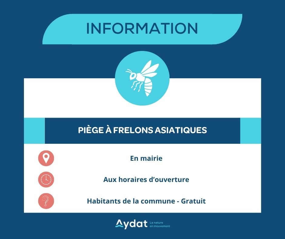 Dans le cadre de ses actions en faveur de la protection de l’environnement et de la sécurité des habitants, la Mairie met à disposition des pièges à frelons asiatiques.