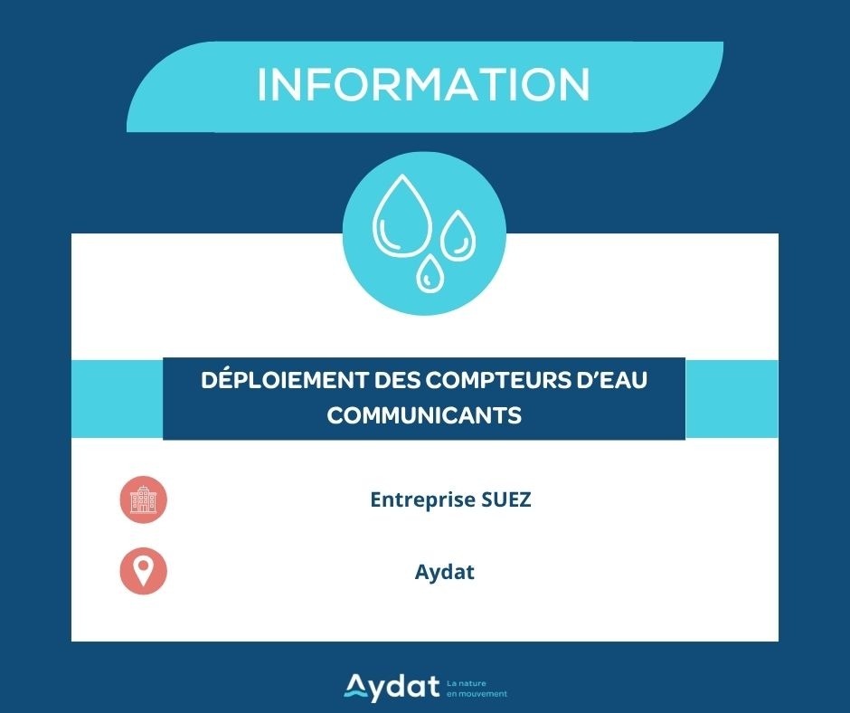 La Mairie d’Aydat informe ses administrés que le Syndicat Mixte de l’Eau (SME) de la Région d’Issoire et des Communes de la Banlieue Sud Clermontoise va prochainement déployer des compteurs d’eau communicants (télérelève) sur notre commune.