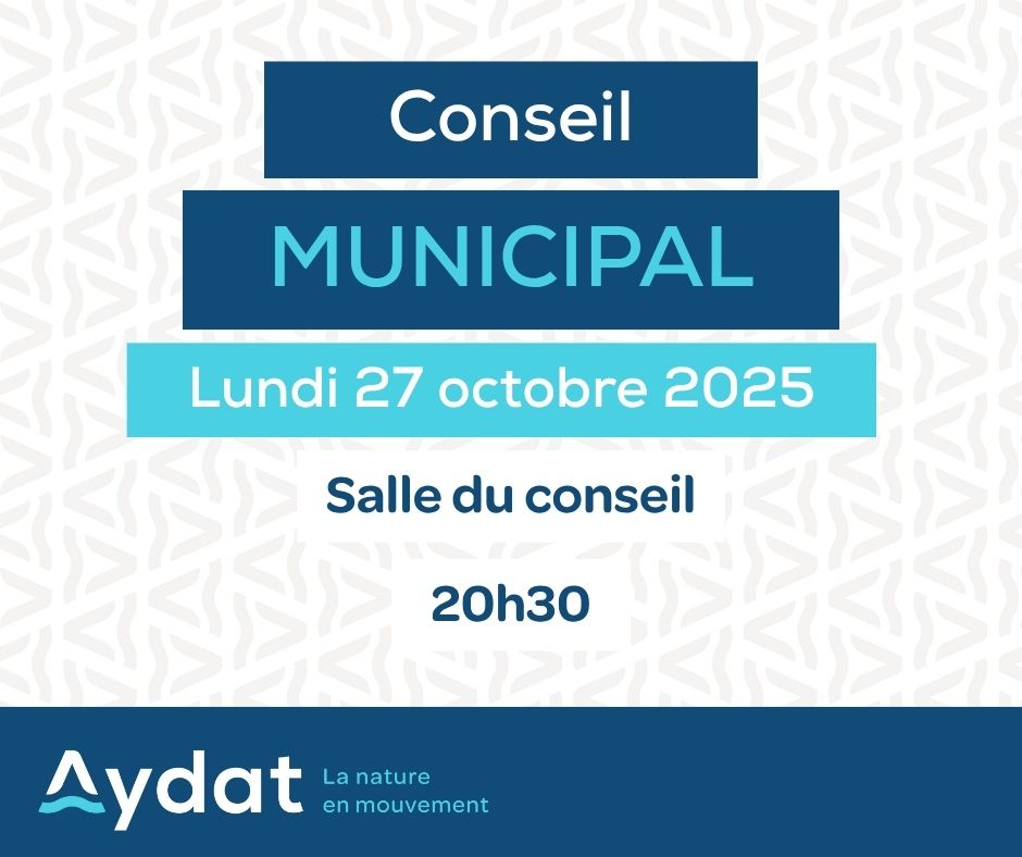 Le Conseil Municipal d’Aydat se réunira le lundi 27 octobre 2025 à 20h30 dans la salle du conseil de la mairie 🏠.